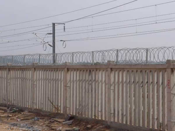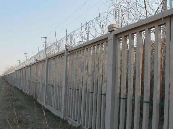 鋼筋混凝土立柱金屬網(wǎng)片防護(hù)柵欄由:鋼筋混凝土立柱、金屬網(wǎng)片及連接部件組成,防護(hù)高度1.8m。